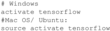 conda 环境创建后,调用 source activate/activate 命令激活环境。在激活的环境中,使用 pip install 命令安装所需的 TensorFlow(从相应的 TensorFlow-API URL下载)。尽管有利用 conda forge 安装 TensorFlow CPU 的 Anaconda 命令,但 TensorFlow 推荐使用 pip install。在 conda 环境中安装 TensorFlow 后,就可以禁用了。现在可以执行第一个 TensorFlow 程序了。