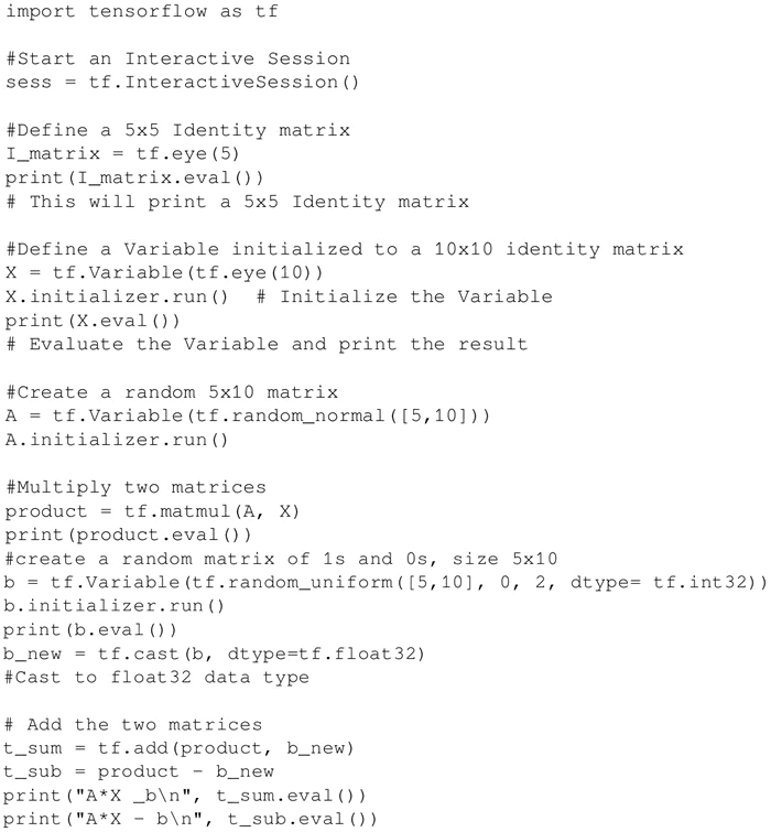矩阵运算,例如执行乘法、加法和减法,是任何神经网络中信号传播的重要操作。通常在计算中需要随机矩阵、零矩阵、一矩阵或者单位矩阵。