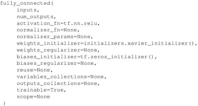 通过前面的学习,我们已经知道如何使用 TensorFlow 的优化器。Contrib 可以用来添加各种层到神经网络模型,如添加构建块。这里使用的一个方法是 tf.contrib.layers.fully_connected,在 TensorFlow 文档中定义如下: