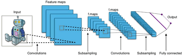 CNN 基本上是几层具有非线性激活函数的卷积,以及将池化层应用于卷积的结果。每层应用不同的滤波器(成百上千个)。理解的关键是滤波器不是预先设定好的,而是在训练阶段学习的,以使得恰当的损失函数被最小化。已经观察到,较低层会学习检测基本特征,而较高层检测更复杂的特征,例如形状或面部。请注意,由于有池化层,靠后的层中的神经元看到的更多的是原始图像,因此它们能够编辑前几层中学习的基本特征。