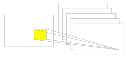 如果想保留图像中的空间信息,那么用像素矩阵表示每个图像是很方便的。然后,编码局部结构的简单方法是将相邻输入神经元的子矩阵连接成属于下一层的单隐藏层神经元。这个单隐藏层神经元代表一个局部感受野。请注意,此操作名为“卷积”,此类网络也因此而得名。当然,可以通过重叠的子矩阵来编码更多的信息。例如,假设每个子矩阵的大小是 5×5,并且将这些子矩阵应用到 28×28 像素的 MNIST 图像。然后,就能够在下一隐藏层中生成 23×23 的局部感受野。事实上,在触及图像的边界之前,只需要滑动子矩阵 23 个位置。