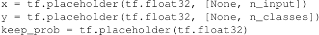设置 TensorFlow 计算图的输入。定义两个占位符来存储预测值和真实标签: