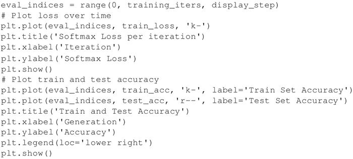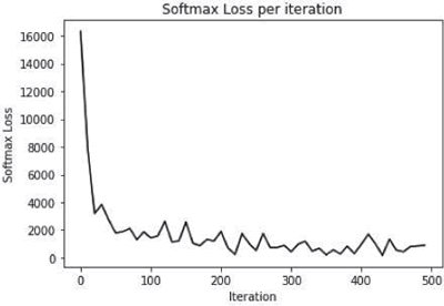 以下是上述代码的输出。首先看一下每次迭代的 Softmax 损失: