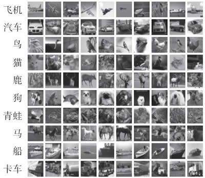 CIFAR-10 数据集由 10 类 60000 张 32×3 2像素的彩色图片组成,每类有 6000 张图片。有 50000 张训练图片和 10000 张测试图片。下面的图片取自https://www.cs.toronto.edu/~kriz/cifar.html: