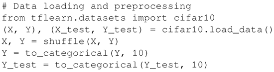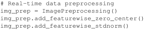 使用 ImagePreprocessing() 对数据集进行零中心化(即对整个数据集计算平均值),同时进行 STD 标准化(即对整个数据集计算标准差)。TFLearn 数据流旨在通过 CPU 先对数据进行预处理,然后在 GPU 上加速模型训练: