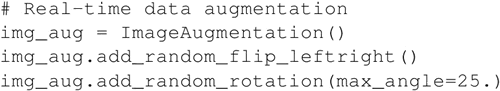 通过随机左右翻转和随机旋转来增强数据集。这一步是一个简单的技巧,用于增加可用于训练的数据: