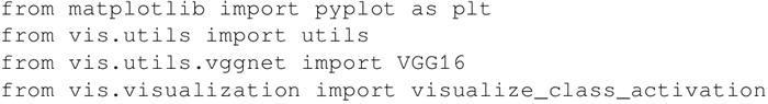 导入 matplotlib 和 keras-vis 使用的模块。另外还需要载入预建的 VGG16 模块。Keras 可以轻松处理这个预建网络: