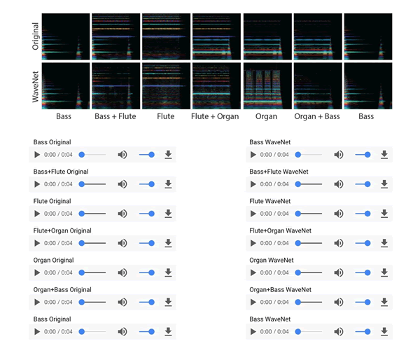 你会发现在互联网上很酷的演示。例如,可以看到模型如何学习不同乐器的声音(https://magenta.tensorflow.org/nsynth):
