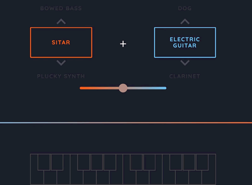 例如,在这个例子中,把西塔琴和电吉他结合起来,形成一种很酷的新乐器。还不够酷?那么把低音贝斯和狗的叫声结合起来怎么样(https://aiexperiments.withgoogle.com/sound-maker/view/)?