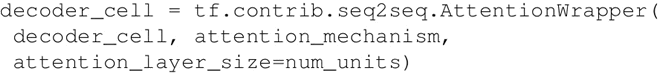 通过一个注意力包装器,使用所定义的注意力机制作为解码器单元进行封装: