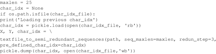string_to_semi_redundant_sequences()返回解析的序列和目标以及关联的字典(函数输出一个元组:包括输入、目标和字典):