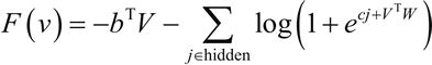 与每个可见向量 V 相关联的是自由能量,一个单独配置的能量,要想与其他含有 V 的配置的能量相等,则: