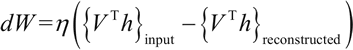 使用对比发散度目标函数,即 Mean(F(Voriginal))-Mean(F(Vconstructed)),则权重的变化由下式给出: