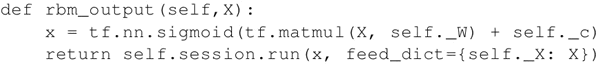 使用上一节中创建的 RBM 类,唯一的改动就是训练后不需要重建图像。此处堆叠 RBM 将数据一直向前传递到 DBN 的最后一层——MLP 层。类中不再使用 reconstruct() 函数,并增加了 rbm_output() 函数: