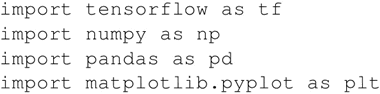 导入依赖库 TensorFlow、NumPy 和 Pandas 来读取 .csv 文件,还需导入 Matplolib: