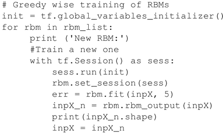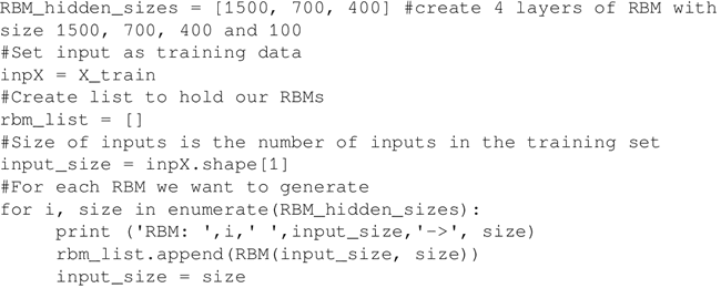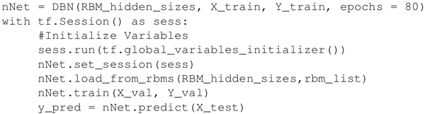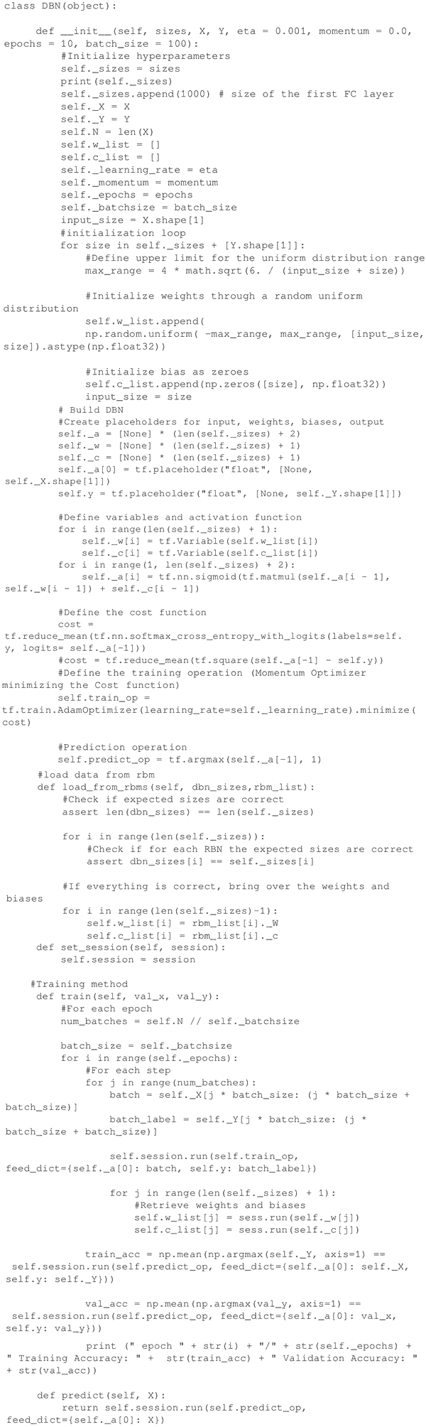 使用前面代码中定义的函数获得训练所需格式的数据。情绪检测 DBN 模型的构建原则基本与这篇关于 MNIST 的论文相似:https://www.cs.toronto.edu/~hinton/absps/fastnc.pdf。