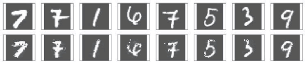 观察重构的图像,对比原始图像和自动编码机生成的重构图像: