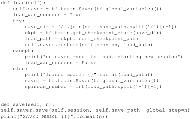 另外还定义了加载和保存网络的方法,因为训练需要消耗大量时间: