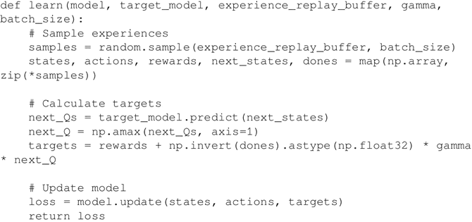 定义函数 learn(),预测价值函数并更新原始的 DQN 网络: