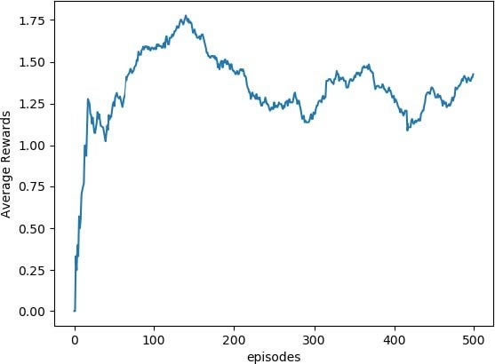 下图是每 100 次运行的平均奖励,更清晰地展示了奖励的提高。