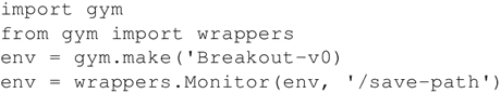 要使用的话,首先要导入 wrappers,然后创建环境并调用 wrappers。默认情况下,它会存储 1,8,27,64 等次的视频,1000 次训练以后将每 1000 次的视频(次数是整数立方)默认保存在一个文件夹中。为此添加的代码如下所示: