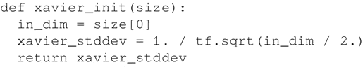 参照 Xavier Glorot 和 Yoshua Bengio 写的论文“Understanding the difficulty of training deep feedforward neural networks”(2009),定义一个 Xavier 初始化器。初始化器被证明可以使 GAN 更好地收敛: