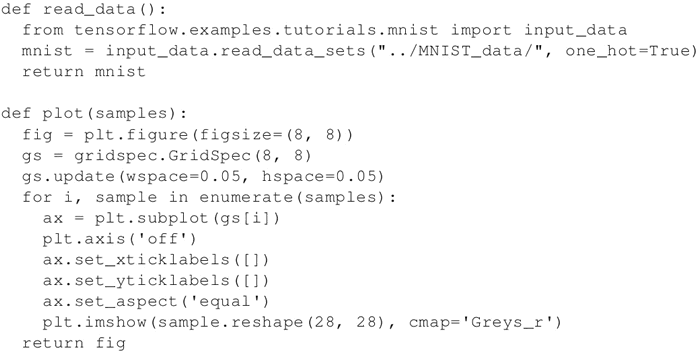 接着从 MNIST 数据集中读取数据并定义一个绘制样本的辅助函数: