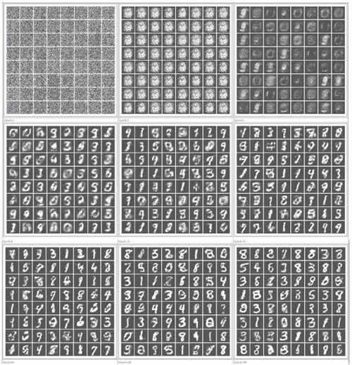 在每个迭代中,生成器进行了大量的预测(它生成伪造的 MNIST 图像),鉴别器试图学习如何生成伪造的图像,该图像由预测与真实的 MNIST 图像混合产生。经过 32 次迭代后,生成器学会了伪造这组手写数字。没有人编写程序使机器能够写作,但机器已经学会了如何编写与人类写的无法区分的数字。值得注意的是,训练 GAN 可能非常困难,因为需要找到两名选手之间的平衡点。