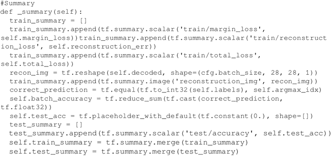 此外,很容易定义一个_summary(...)方法来报告损失和精确度: