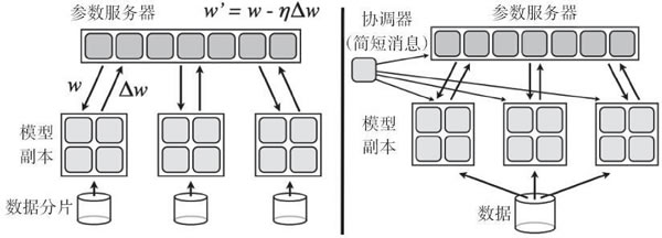 图 5 同步和异步数据并行训练,同步和异步数据并行训练的示例