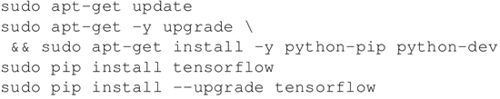 登录到机器后,需要用以下命令安装 PIP 和 TensorFlow 来设置环境: