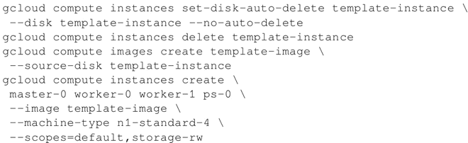 创建多个 worker(worker-0,worker-1),它们是初始模板——实例机器的克隆。不希望在机器关闭时删除磁盘,这就是为什么要有第一条命令: