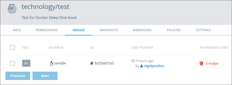 为了推送一个镜像到一个具体的仓库,需要将镜像用库的名称打标签。本例中,DTR 库的全限定名为 dtr.mydns.com/technology/test。这个名字是由 DTR 的 DNS 域名与镜像库的名称组合得到的。