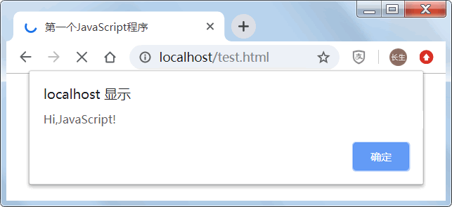 在浏览器中浏览上面示例网页,首先弹出提示文本“顶部脚本”,然后显示网页标题“test”,接着弹出提示文本“头部脚本”,下面才显示一级标题文本“网页标题”,继续弹出提示文本“页面脚本”, 接着显示段落文本“正文内容”,最后弹出提示文本“底部脚本”。你看,对于导入的 JavaScript 文件,也将按照 <script> 标签在文档中出现的顺序来执行,而且执行过程是文档解析的一部分,不会单独解析或者延期执行。