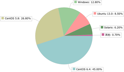 下图是 2016 年初国内服务器端各个操作系统的市场份额: