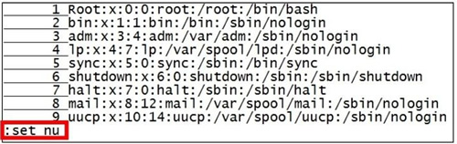 如果想要取消行 号,则再次输入":set nonu"即可。