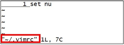 如果希望每次打开文件都默认显示行号,则可以编辑 Vim 的配置文件。每次使用 Vim 打开文件时,Vim 都会到当前登录用户的宿主目录(用户配置文件所在地)中读取 .vimrc 文件,此文件可以对 Vim 进行一些默认配置设定。