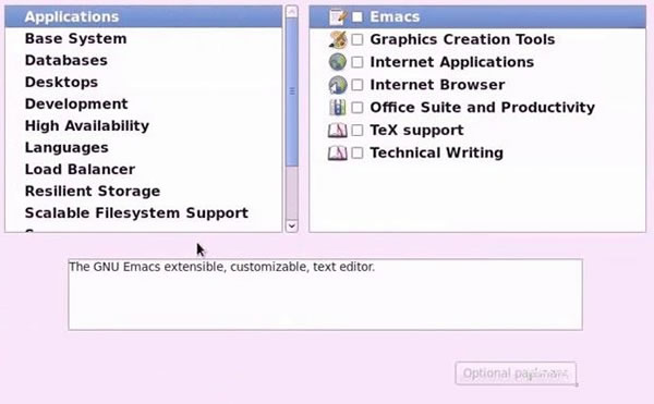 图 2 中所示为 Linux 列出的许多软件包组,例如编辑器、系统工具、开发工具等。在此页面,我们可以根据需要选择要安装的软件包。