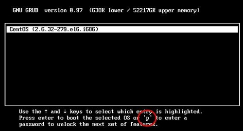 注意到了吗?在 GRUB 界面中已经看不到"e"键了,必须输入"p"键,并输入正确的密码才能进入编辑界面。但是这样加密,在启动 CentOS 时,是不需要密码就能正常启动的。如果既需要 GRUB 的整体加密,又需要系统启动时输入正确的密码,应该怎么做呢?