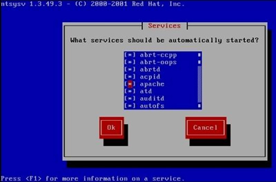 #ntsysv 命令其实和 chkconfig 命令使用同样的管理机制,也就是说,ntsysv 已经可以进行源码包安装 apache 服务的自启动管理了,如图 1 所示